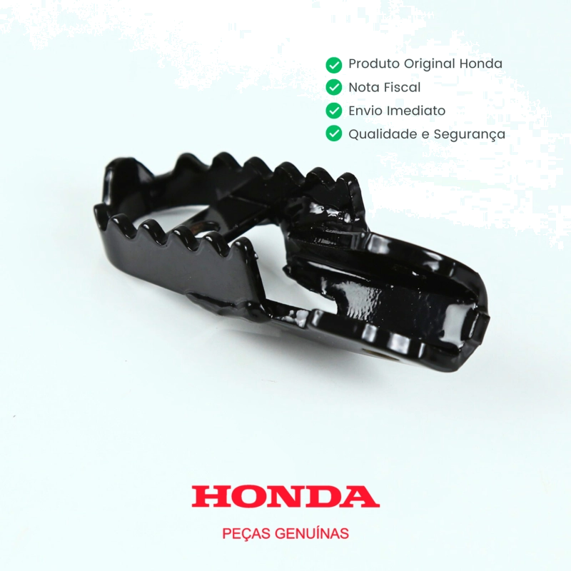 A pedaleira dianteira lado esquerdo original Honda é responsável por oferecer apoio firme e seguro ao pé do piloto, garantindo conforto, estabilidade e controle durante a condução da motocicleta. Fabricada conforme o padrão original de fábrica, assegura excelente resistência, encaixe perfeito no suporte e preserva a ergonomia original da motocicleta, sem necessidade de adaptações.