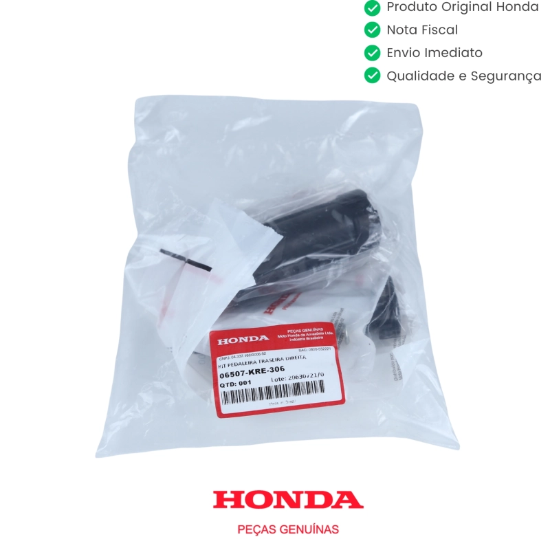 A pedaleira original Honda oferece resistência, segurança e conforto ao passageiro. Produzida com materiais de alta durabilidade e seguindo os padrões de fábrica, garante encaixe perfeito e preserva a integridade estrutural da motocicleta. Ideal para substituição da peça desgastada ou danificada.
