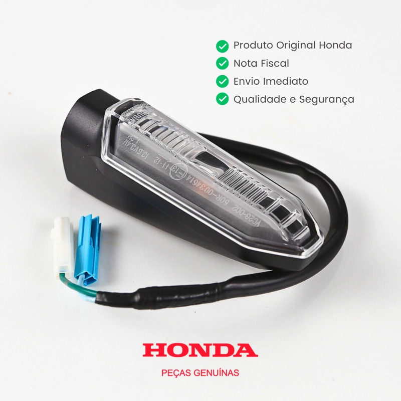 O pisca dianteiro direito original Honda garante sinalização eficiente, visibilidade clara e maior segurança nas mudanças de direção. Desenvolvido conforme os padrões de fábrica Honda, oferece encaixe perfeito, acabamento original e durabilidade superior.
