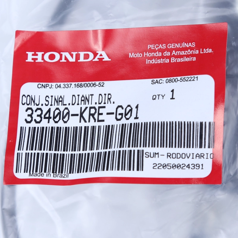 O pisca dianteiro direito original Honda garante sinalização eficiente, segurança e visibilidade ao indicar mudanças de direção. Desenvolvido conforme os padrões de fábrica Honda, oferece encaixe perfeito, acabamento original e durabilidade, preservando o funcionamento correto do sistema elétrico e o visual da motocicleta.