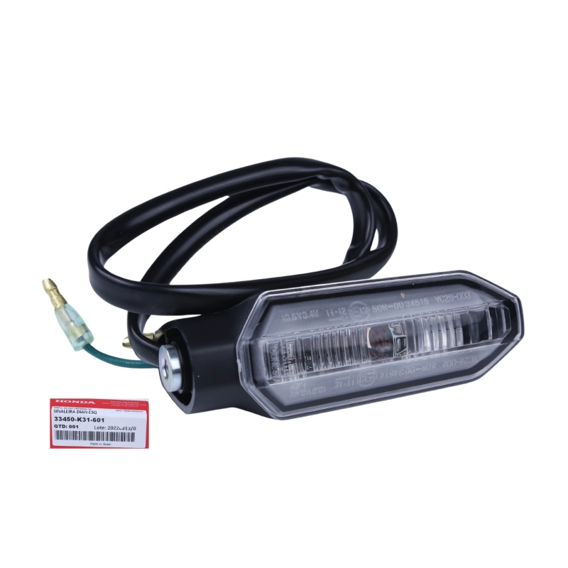 O pisca dianteiro lado esquerdo original Honda é uma peça de sinalização essencial que oferece visibilidade eficiente ao indicar mudanças de direção, reforçando a segurança do piloto e dos demais usuários da via. Por ser um componente genuíno de fábrica, proporciona encaixe preciso, acabamento original e durabilidade compatível com o padrão Honda.