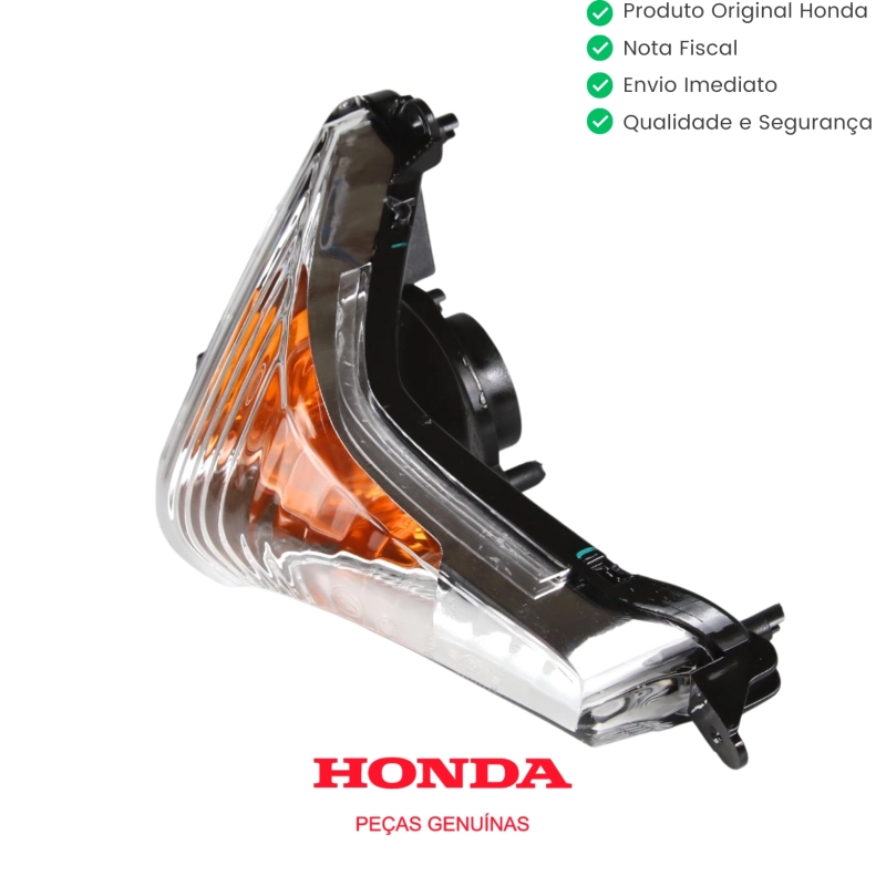 O pisca dianteiro lado esquerdo original Honda é responsável por garantir a sinalização correta e a segurança durante a condução, mantendo o padrão original de fábrica da motocicleta. Desenvolvido com materiais de alta qualidade, oferece encaixe perfeito, excelente durabilidade e funcionamento confiável.