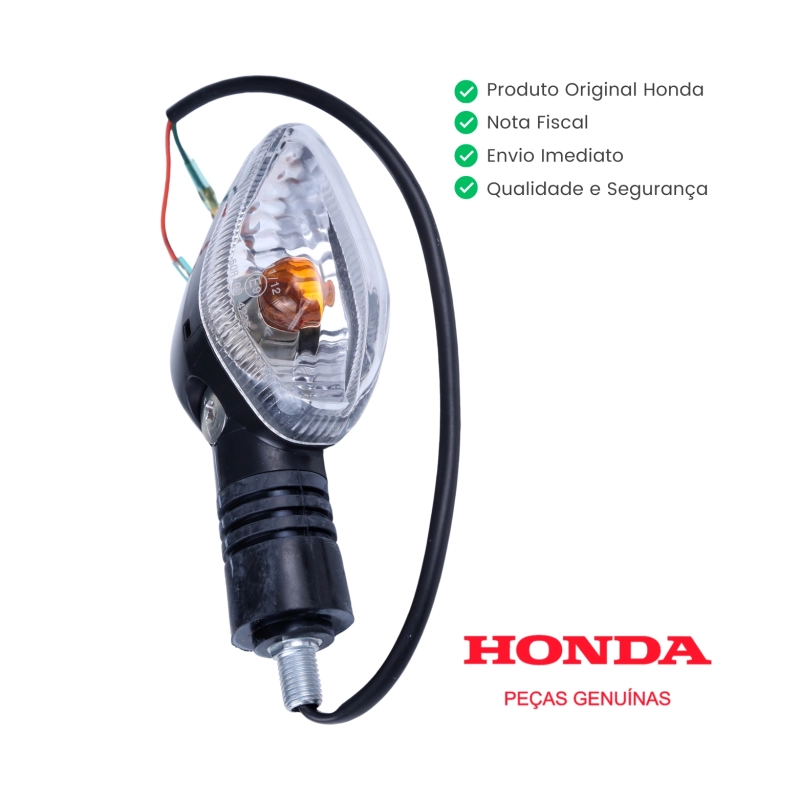 O pisca traseiro lado esquerdo original Honda garante sinalização eficiente, segurança no trânsito e preservação total do padrão original da motocicleta. Produzido conforme as especificações de fábrica, oferece encaixe perfeito, excelente durabilidade e acabamento de alto nível, sem necessidade de adaptações.
