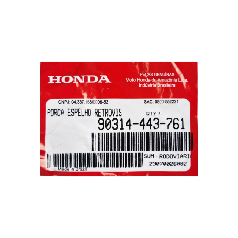 A Porca do Espelho Retrovisor Original Honda é responsável pela fixação segura do retrovisor na motocicleta, garantindo estabilidade e evitando folgas durante a pilotagem. Fabricada com padrão original de fábrica, proporciona encaixe preciso, resistência e durabilidade, mantendo a segurança e a originalidade da moto.