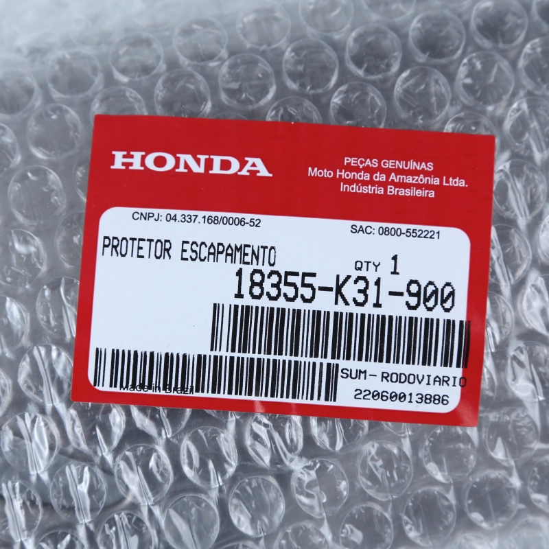 O protetor do escapamento original Honda tem a função de proteger o escapamento contra contato direto e altas temperaturas, ajudando a reduzir o risco de queimaduras e preservando o acabamento do conjunto. Produzido conforme o padrão original de fábrica, garante encaixe perfeito, resistência térmica e excelente durabilidade.