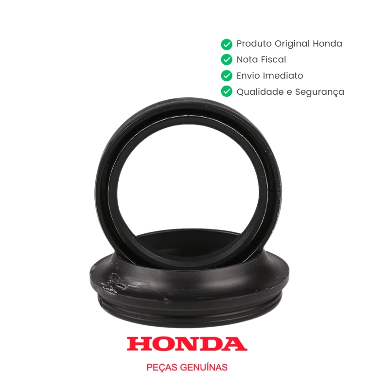 O retentor de bengala com guarda-pó original Honda é responsável por vedar corretamente o óleo da suspensão dianteira e proteger os componentes internos contra poeira, sujeira e umidade. Produzido conforme o padrão original de fábrica, garante funcionamento adequado da suspensão, maior durabilidade do conjunto e preservação da dirigibilidade original da motocicleta.