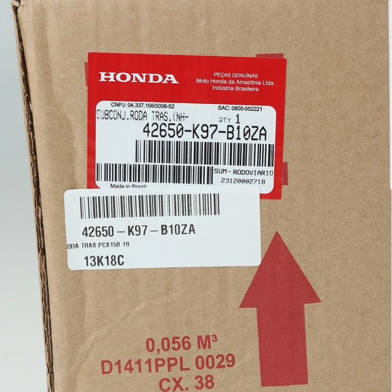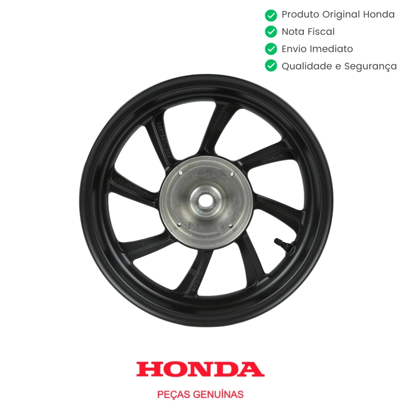 A roda traseira original Honda foi desenvolvida para garantir segurança, estabilidade e desempenho no uso diário da motocicleta.