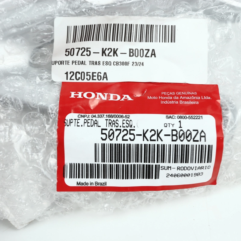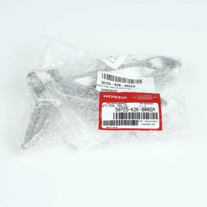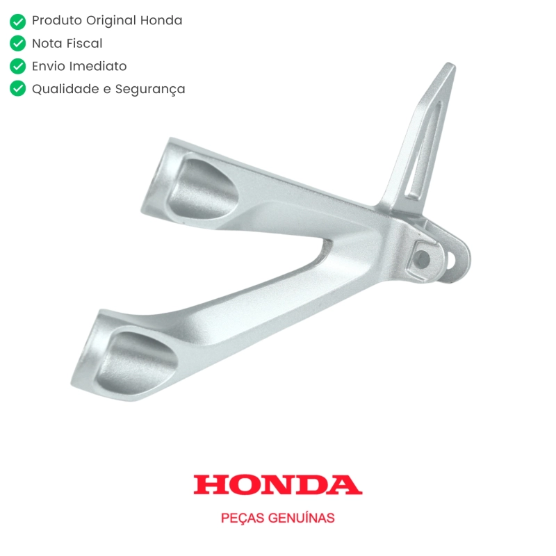 O suporte da pedaleira traseira lado esquerdo original Honda é o componente responsável por sustentar e fixar corretamente a pedaleira do passageiro, garantindo firmeza, segurança e conforto durante a condução. Produzido conforme o padrão original de fábrica, oferece excelente resistência estrutural, encaixe perfeito no chassi e preserva a funcionalidade e a ergonomia original da motocicleta, sem necessidade de adaptações.
