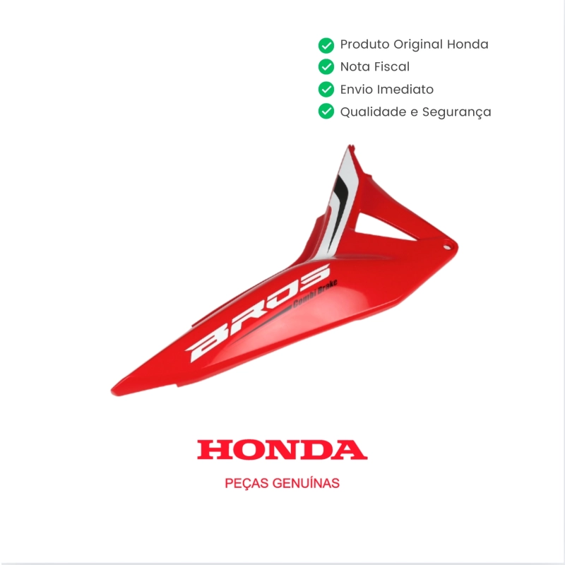 Tampa lateral lado direito 100% original Honda, desenvolvida para reposição com padrão de fábrica, garantindo encaixe perfeito, alinhamento correto e preservação da estética original da motocicleta. Peça na cor Vermelho Special Edition, ideal para manter o visual exclusivo da versão especial da NXR Bros 160 EDD.