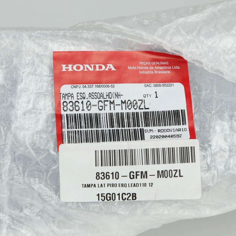 A tampa lateral do piso é responsável pelo acabamento da parte inferior da scooter, além de proteger componentes contra sujeira, impactos e desgaste do uso diário. Utilizando uma peça original Honda, você garante encaixe perfeito, durabilidade e mantém o padrão original de fábrica.