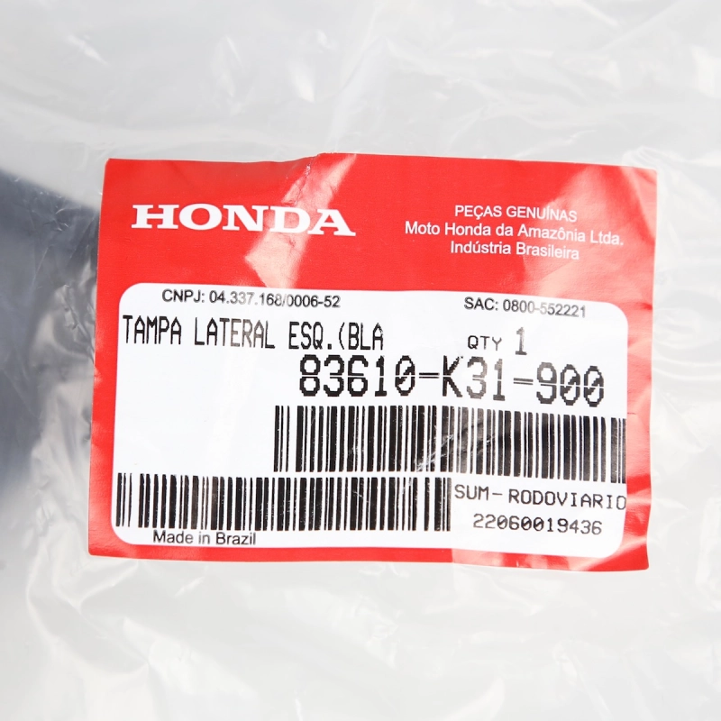 A tampa lateral é responsável pelo acabamento da motocicleta, além de proteger componentes internos contra sujeira, impactos e desgaste do uso diário. Utilizando uma peça original Honda, você garante encaixe perfeito, durabilidade e mantém o padrão original de fábrica da sua moto.