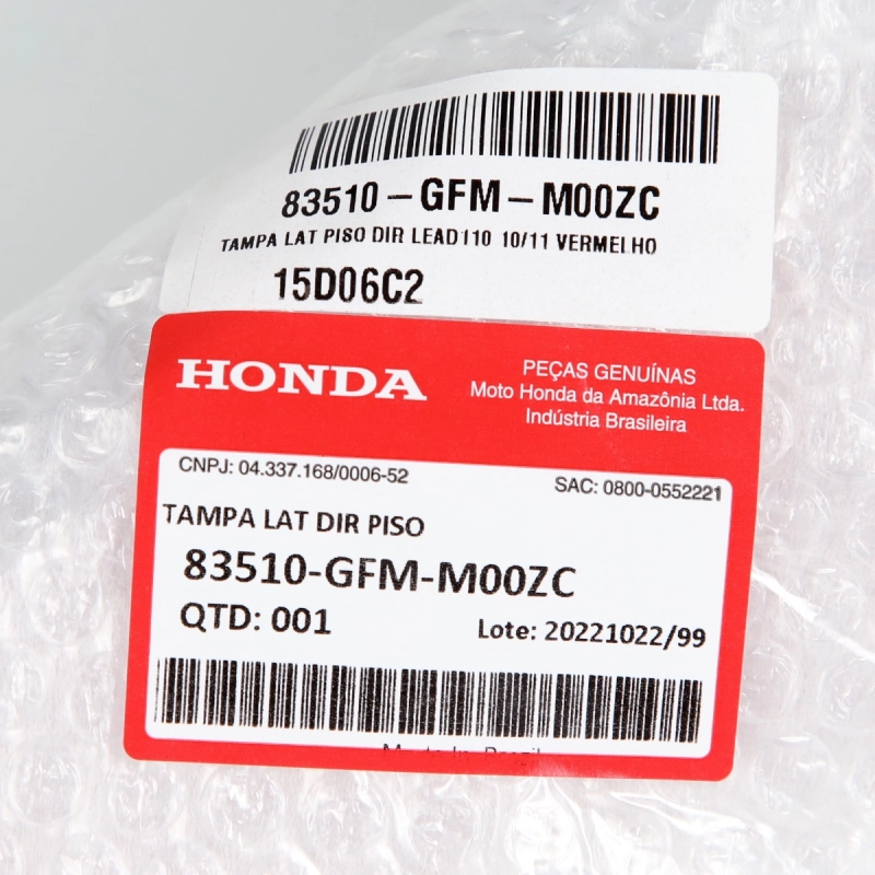 A tampa lateral do piso é responsável pelo acabamento da parte inferior da scooter, além de proteger componentes contra sujeira, impactos e desgaste do uso diário. Utilizando uma peça original Honda, você garante encaixe perfeito, durabilidade e mantém o padrão original de fábrica.