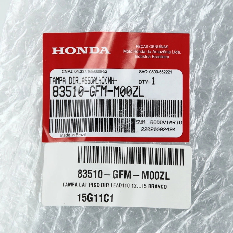 A tampa lateral do piso é responsável pelo acabamento da parte inferior da scooter, além de proteger componentes contra sujeira, impactos e desgaste do uso diário. Utilizando uma peça original Honda, você garante encaixe perfeito, durabilidade e mantém o padrão original de fábrica.
