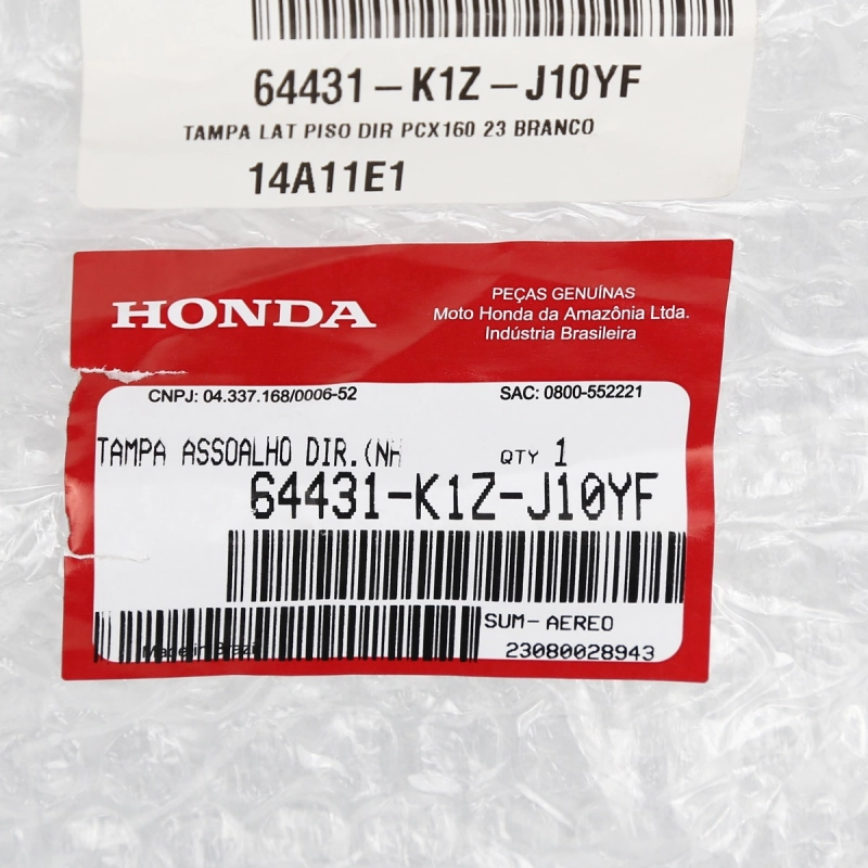 A tampa lateral do piso direita da PCX 160 é uma peça essencial para o acabamento e proteção da região inferior da motocicleta, garantindo um visual alinhado ao padrão original Honda e protegendo componentes internos contra sujeira e desgaste.