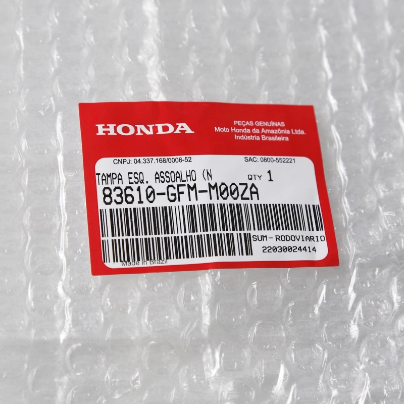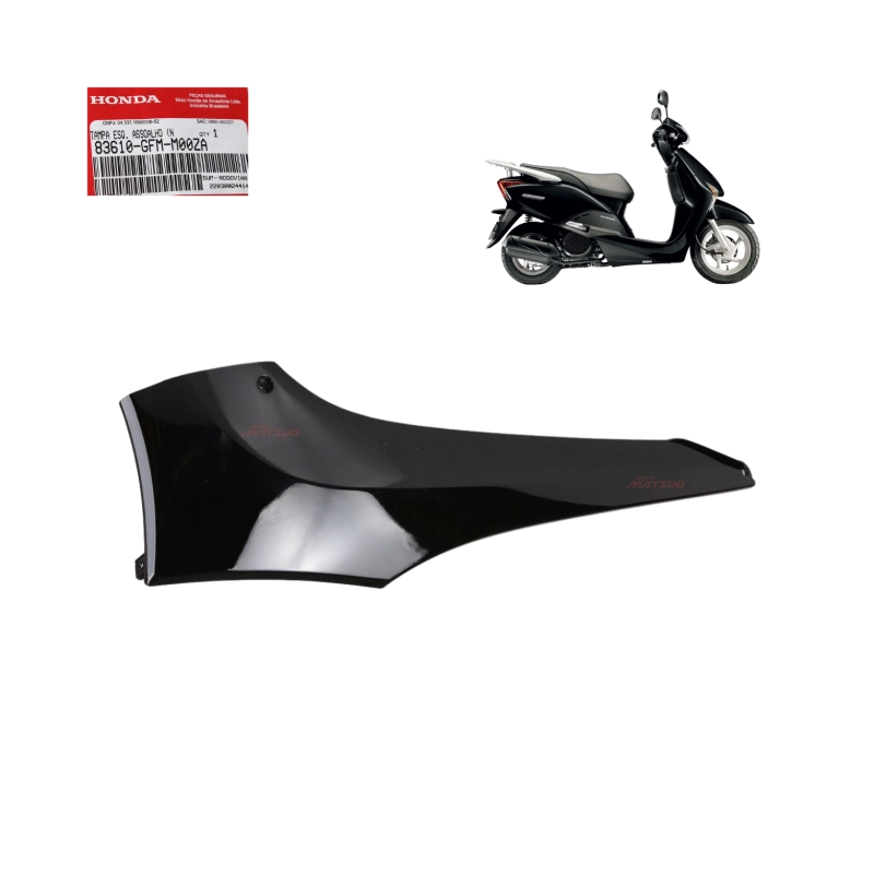 A tampa lateral do piso é responsável pelo acabamento e proteção da parte inferior da motocicleta, evitando a entrada de sujeira e garantindo maior durabilidade dos componentes internos. Utilizando uma peça original Honda, você garante encaixe perfeito, resistência e mantém o padrão original de fábrica da sua moto.