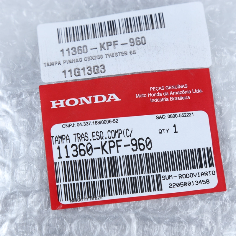 A Tampa do Pinhão é responsável por proteger o conjunto da transmissão, evitando acúmulo de sujeira e garantindo o funcionamento adequado da moto. Produzida pela Honda, esta peça oferece encaixe perfeito, resistência e acabamento de fábrica, assegurando a mesma qualidade utilizada na montagem original da motocicleta.