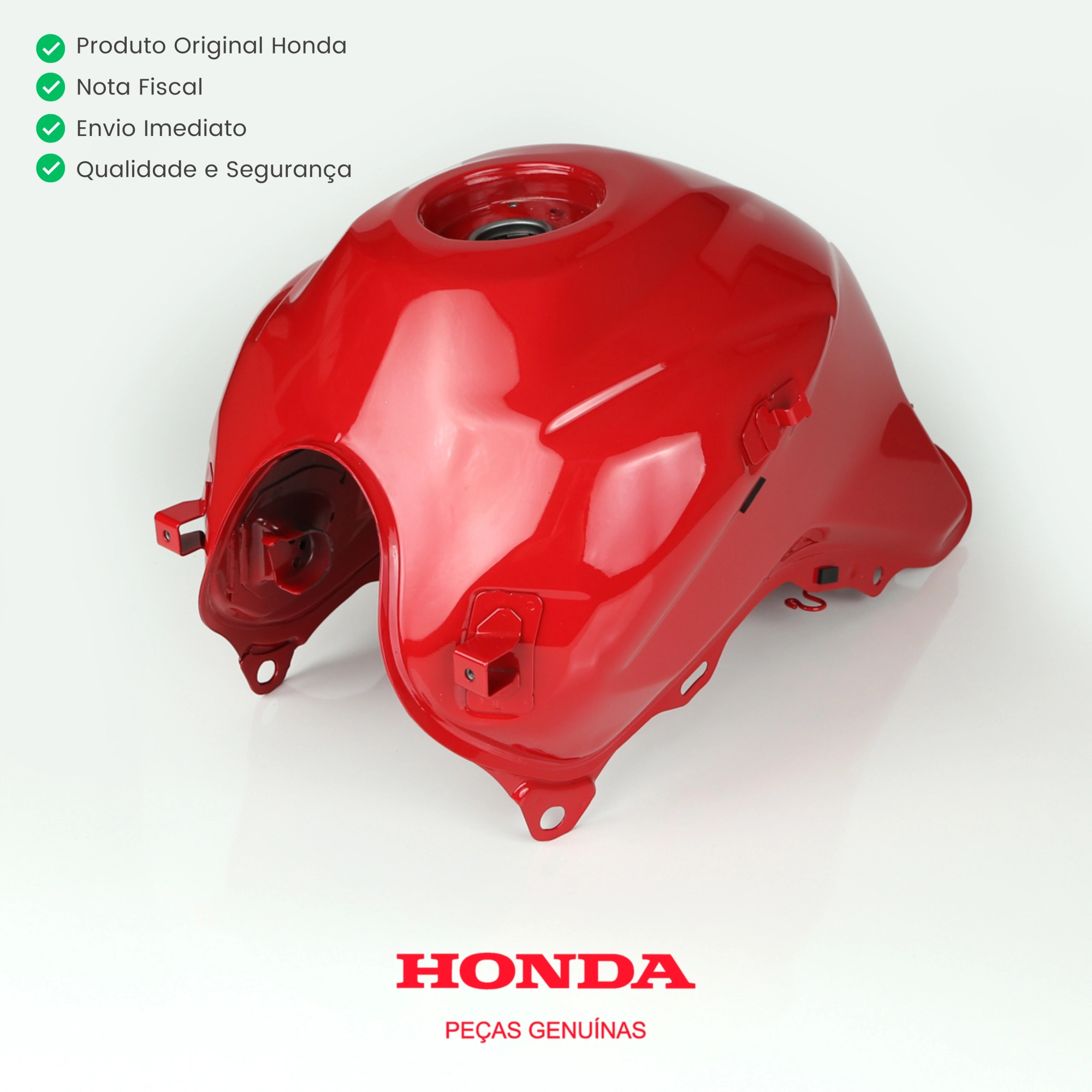 O tanque de combustível é fabricado com aço de alta resistência e pintura automotiva original Honda, proporcionando excelente proteção contra corrosão e mantendo o visual do veículo exatamente como saiu da linha de montagem.