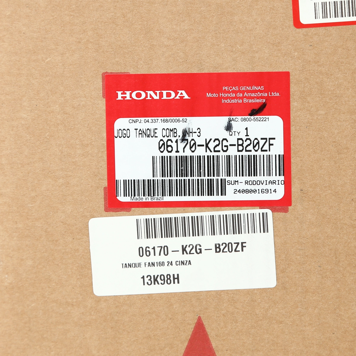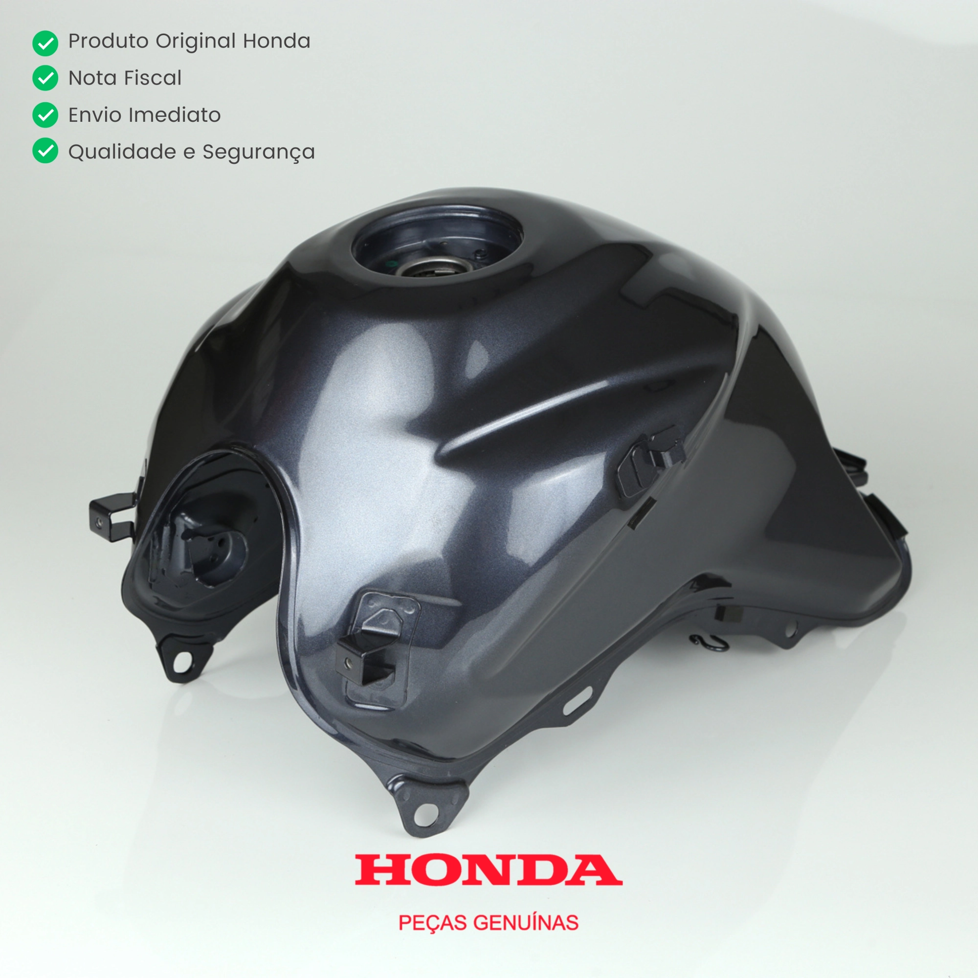 Tanque de combustível 100% original Honda, desenvolvido com material resistente e projetado para garantir encaixe perfeito e funcionamento seguro do sistema de alimentação da motocicleta.
