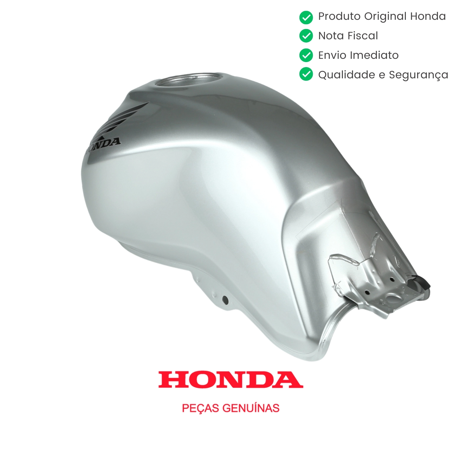O tanque de combustível original Honda é responsável por armazenar o combustível de forma segura e garantir o correto abastecimento do sistema de alimentação da motocicleta. Desenvolvido conforme o padrão original de fábrica, oferece excelente resistência estrutural, vedação adequada e encaixe perfeito no chassi, mantendo o visual e a originalidade da moto, sem necessidade de adaptações.