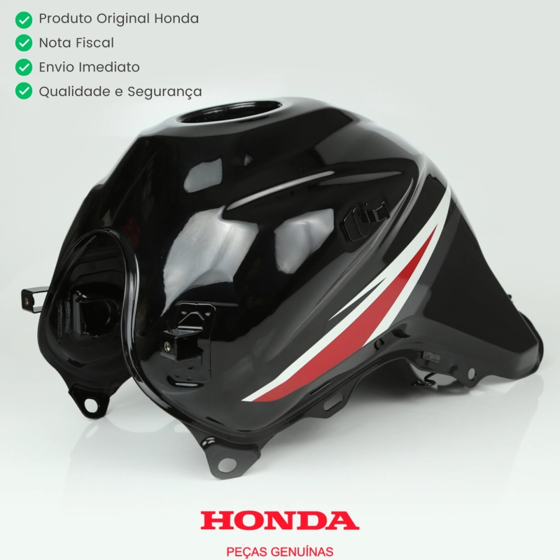 Tanque de combustível original Honda na cor preta, produzido em aço de alta resistência e com acabamento de fábrica. Peça genuína, desenvolvida para manter a originalidade da motocicleta, garantindo encaixe perfeito, durabilidade e total segurança no sistema de alimentação.
