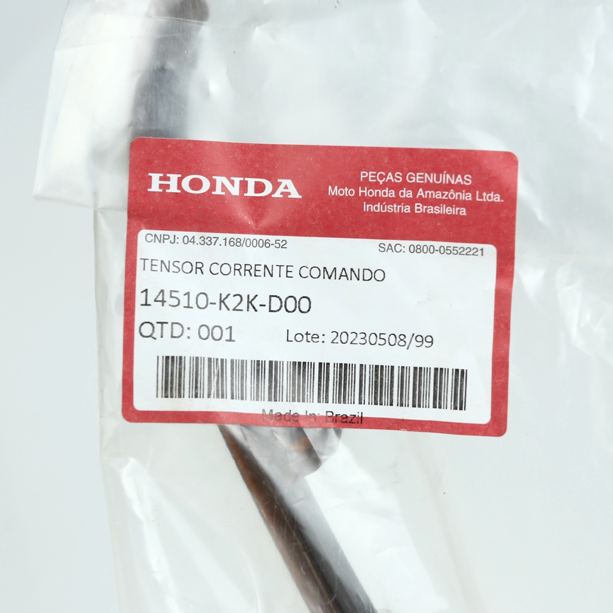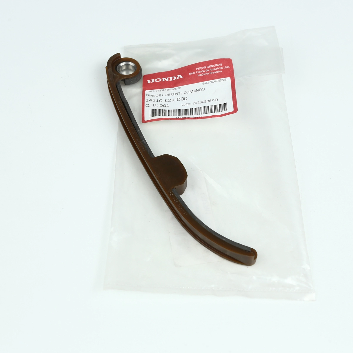 Tensor da corrente de comando original Honda, responsável por manter a corrente sempre tensionada de forma correta, garantindo o sincronismo preciso do motor. Peça essencial para reduzir ruídos, evitar desgaste prematuro da corrente e assegurar maior durabilidade e funcionamento confiável do conjunto do comando. Fabricado conforme os padrões de montagem de fábrica Honda, proporciona encaixe perfeito e desempenho ideal.
