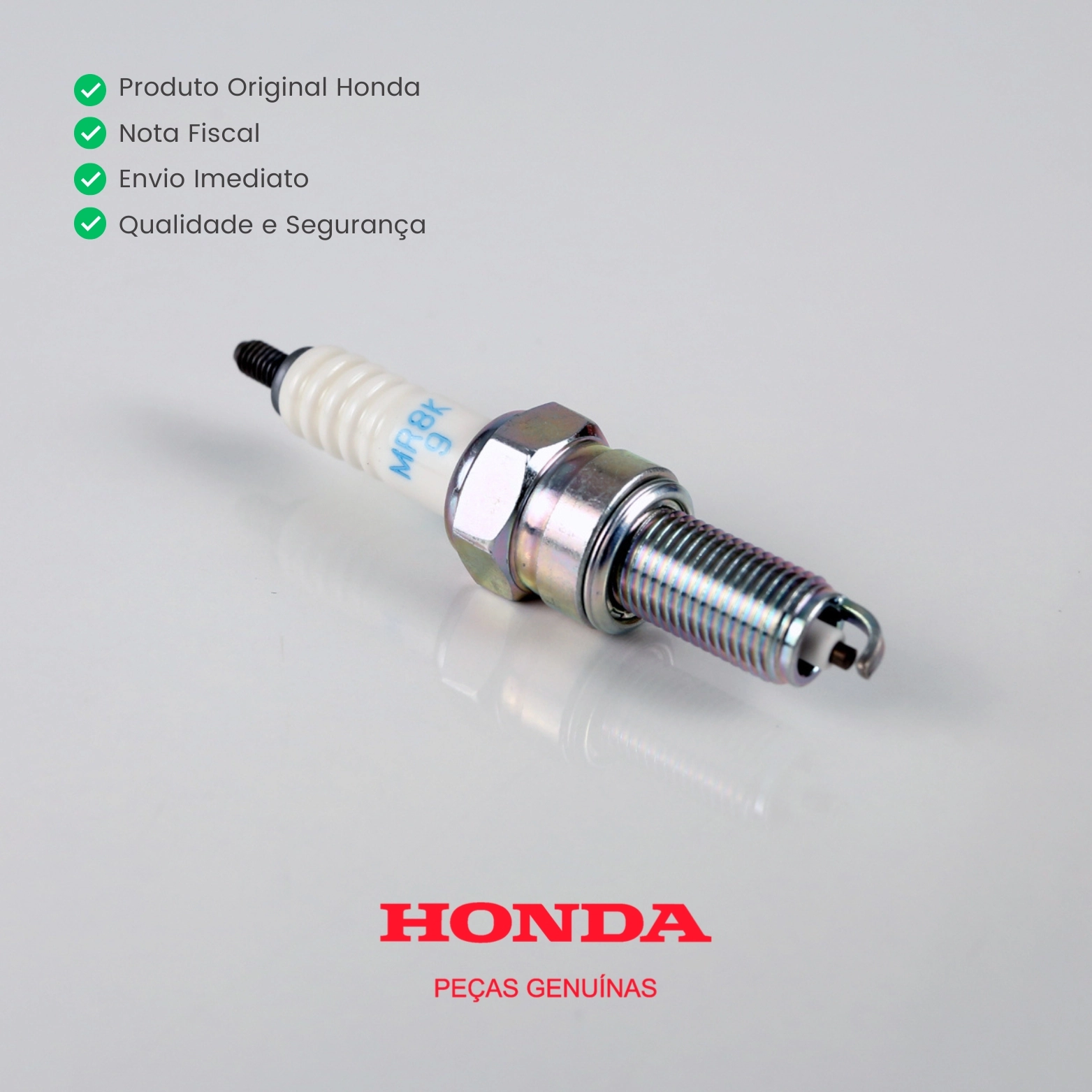 A vela de ignição original Honda NGK MR8K-9 é responsável por garantir a ignição correta da mistura ar/combustível, proporcionando partidas rápidas, funcionamento estável do motor, melhor desempenho e eficiência no consumo.