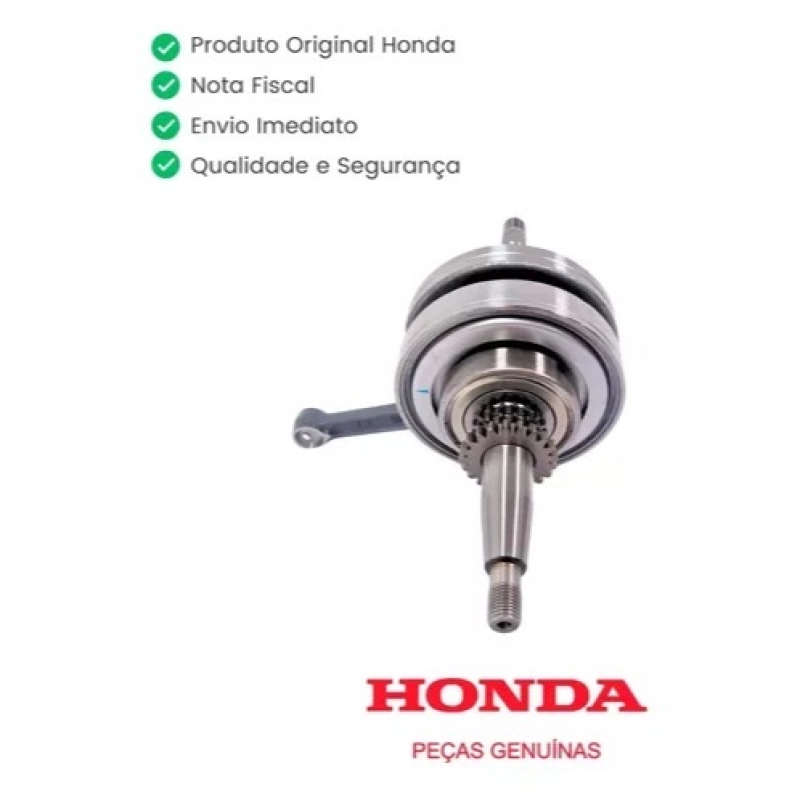 Virabrequim original Honda, desenvolvido especificamente para a scooter PCX 150. Responsável por converter o movimento dos pistões em rotação do motor, é uma peça fundamental para garantir funcionamento correto, desempenho e durabilidade. Fabricado com padrão de qualidade Honda, assegura encaixe perfeito e confiabilidade total.